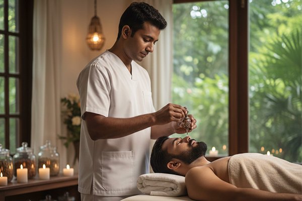 Nasya involves the administration of medicated oils, powders, or herbal decoctions through the nasal passages. The nose is considered the gateway to the head, and Nasya is the primary treatment for cleansing and nourishing the cranial region, sinuses, throat, and respiratory passages.