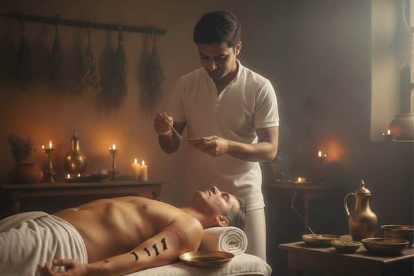 Virechan is a carefully controlled cleansing of the small intestine and liver through herbal laxatives. This procedure specifically targets excess Pitta dosha and clears inflammatory toxins through the bowels, providing deep purification of the blood and tissues.
